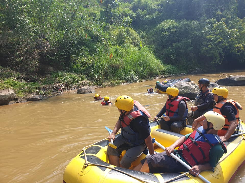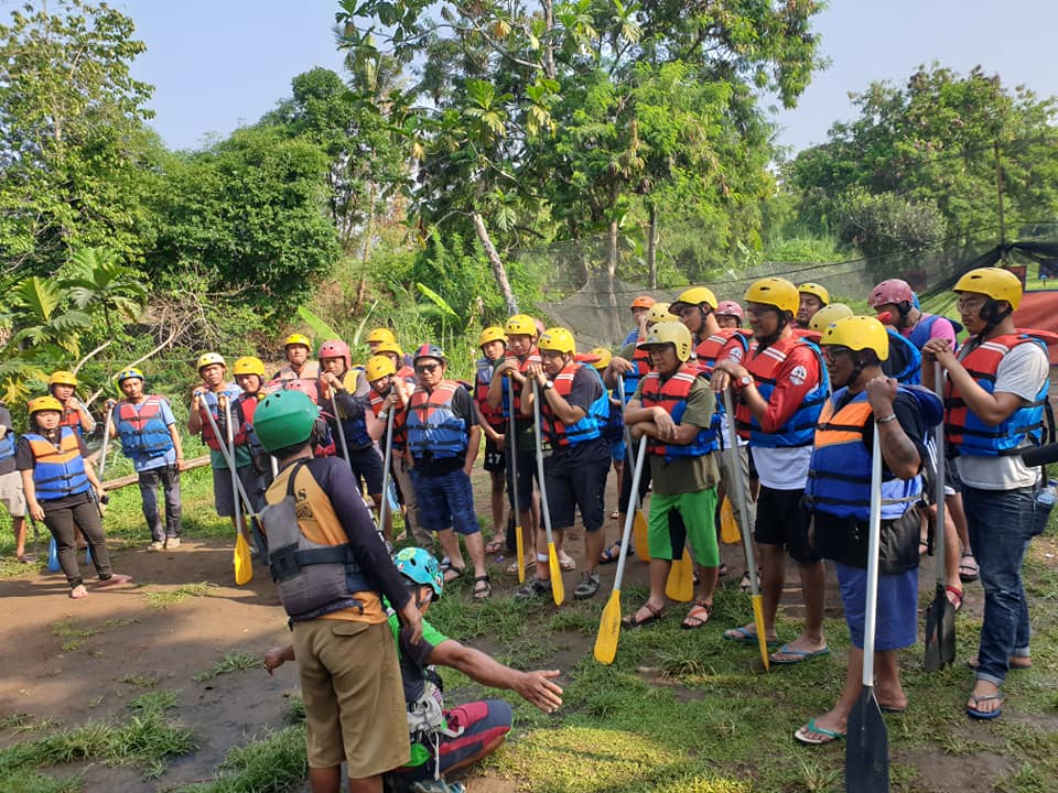 Briefing dari pemandu arung jeram sebelum kegiatan dimulai