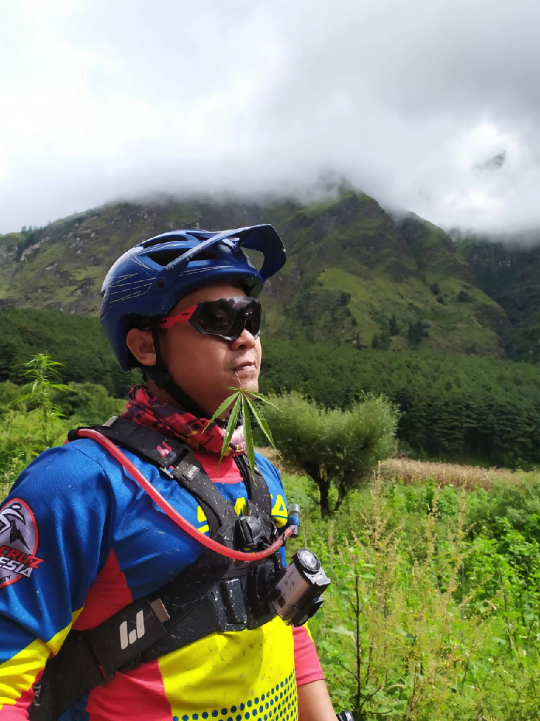 Riding hari kedua kami mengambil Rute Kalopani ke Tathopani. Rute ini berbeda dengan rute Muhktinath-Kalopani. Rute ini terdapat banyak pepohonan yang sejuk dan di kelilingi banyak pohon ganja sepanjang perjalanan. Maka dengan kesepakatan marshal, kita namai jalur ini dengan nama Trek Ganja :D. Banyak pohon ganja tumbuh lebat di sepanjang trek yang kami lalui. Tipikal track ini adalah hutan dengan vegetasi tumbuhan keras, bebatuan dan pohon-pohon semak yang salah satunya adalah pohon ganja. Sepanjang perjalanan kami lalui sungai Gandhagi yang membentang dari India ke China melalui Nepal. Lagi-lagi pemandangan yang menakjubkan yang kita jumpai.