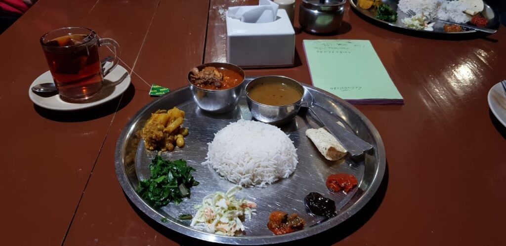 Pagi yang cerah pukul 06.00 pagi kami melihat dari balik jendela kamar, wooww… benar-benar pemandangan pegunungan es yang sangat indah bisa kami lihat dari jendela. Warga sana biasa menyebutnya Annapurna I. Sarapan khas masakan Tibet pun sudah tersaji di meja makan untuk kami nikmati di pagi itu.