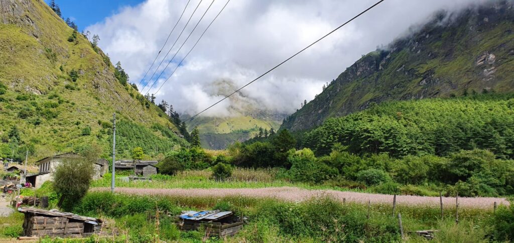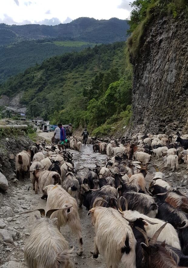 Menyusuri pegunungan di lereng gunung yang indah yang di bawahnya sungai yang sangat besar dan eksotis. Beberapa kali kami melewati air terjun yang cantic, juga bebatuan granit dan marmer di bibir jurang yang ada di sekitar sungai. Sesekali kami juga bertemu dengan peternak kambing yang menggiring kambingnya yang jumlahnya bisa ratusan bahkan ribuan ekor. Lagi-lagi pemandangan yang menakjubkan. Kami juga melewati jembatan gantung yang menjadi ciri khas negara Nepal di pegunungan Himalaya. Angin kencang dan dalamnya ratusan meter jurang yang menjadi tantangan dalam melewati salah satu jembatan gantung di Nepal yang iconic ini. Benar-benar pengalaman yang sangat luar biasa.